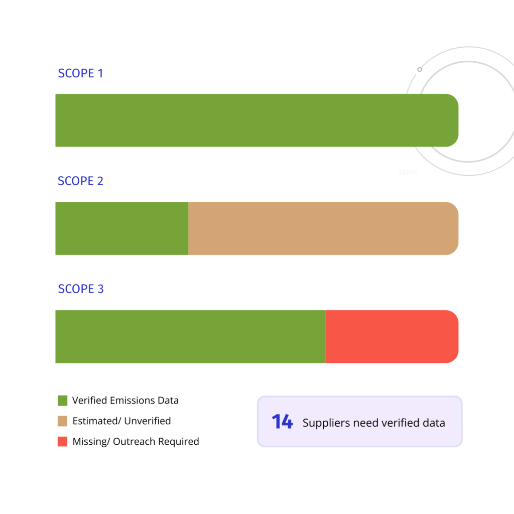 Identify suppliers that lack verified emissions data and prioritize outreach for reporting readiness.