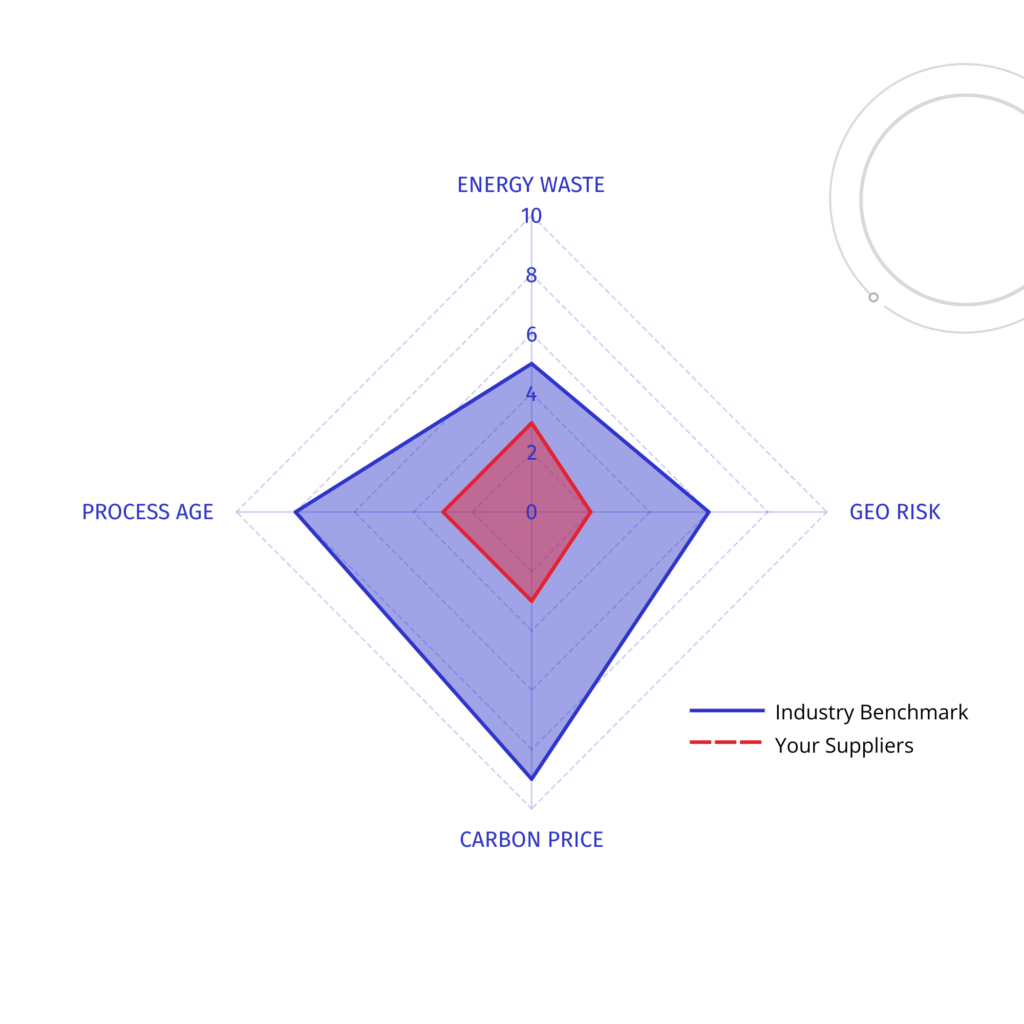 Surface suppliers with energy waste, outdated processes, or geographic concentration so you can act early.
